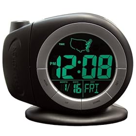 This review is from: Elgin Electric LCD Projection Alarm Clock With Time Ready Technology, BlackI returned this clock for 3 reasons. (1) I have 3 different atomics clocks in my house that all set the time automatically. This one did not, although the package and instructions said it would, even though they did not use the word, "atomic". (2) The only way to project the time right-side up is to put the clock at the foot of the bed. (3) The green display was too bright for me to sleep at night....
