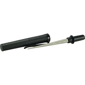 Features: 3.11 in. 420C steel diamond dust coated rod, 1.52 in. Kryton handle. Includes holder with pocket clip. Weighs 1.17 oz.