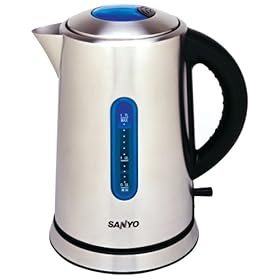 This review is from: Sanyo U-K170S 1-3/4-Quart Stainless-Steel Electric KettleI recieved the Sanyo U-K170S and was surprisied as I thought I had ordered the white model. My first choice was the white plastic exterior because I felt it wouldn't be as hot to touch after boil. I was right, the stainless steel exterior is hot. That said, if you had taken the pot off the stove you wouldn't put your hand on it. An easy adaptation.The appliance performs well, boils water quickly enough, has a large capacity, and handles fairly easily. The handle stays cool, and the top opens with a little pressure for filling. I did have an occasion to refill the pot right after use and the top didn't open as easily, but did open.I've had the kettle for 3 months in daily use and have no complaints. I did quite a lot of research on Amazon looking at the variety of cordless electric kettles offered, and this had the most positive comments and the least important negatives. You would be hard pressed to find a kettle that works as well in this price range. Even some of the over $100 kettles had negative comments. The blue, light on indicator, inside the pot is p...