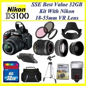 The Nikon D3100 SLR Digital Camera with Nikon 18-55m f3.5-5.6G VR Lens PACKAGE